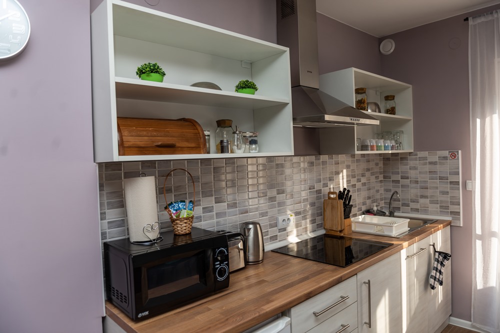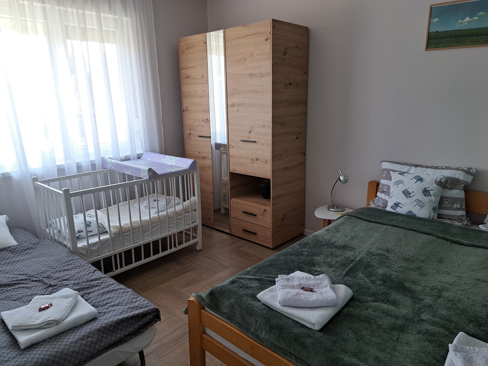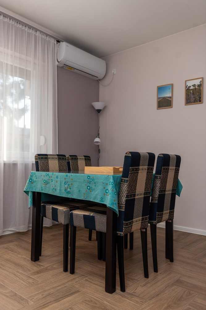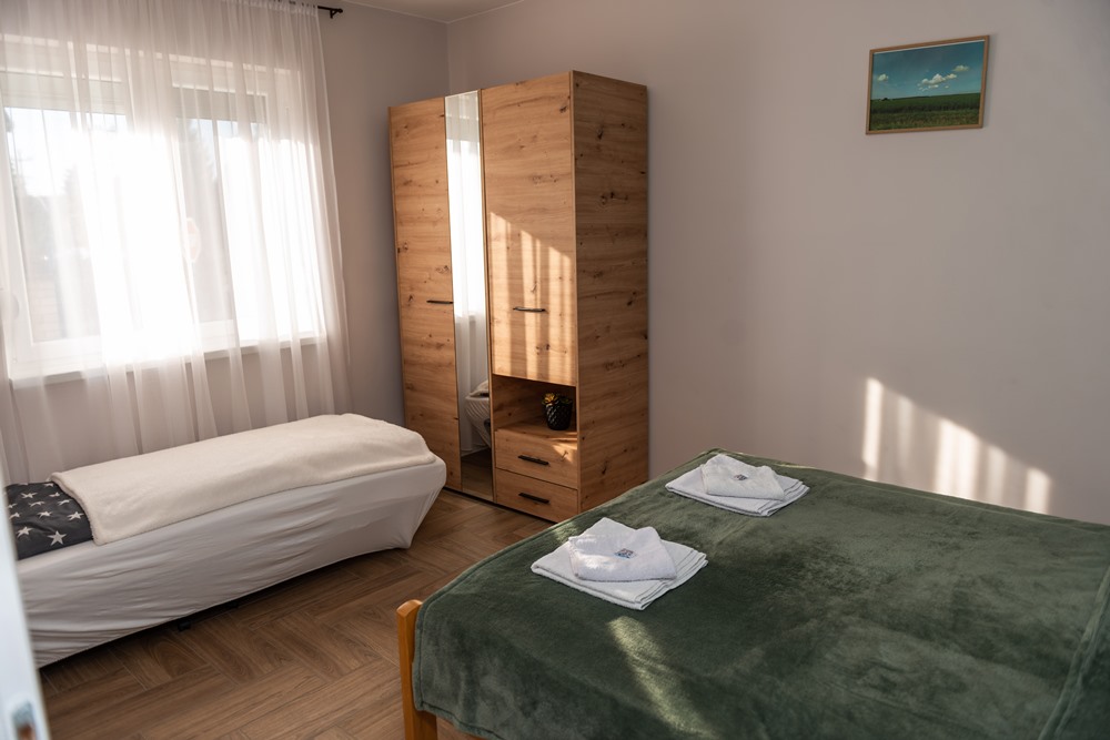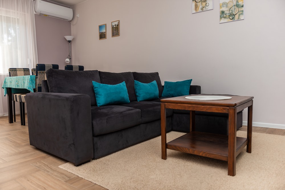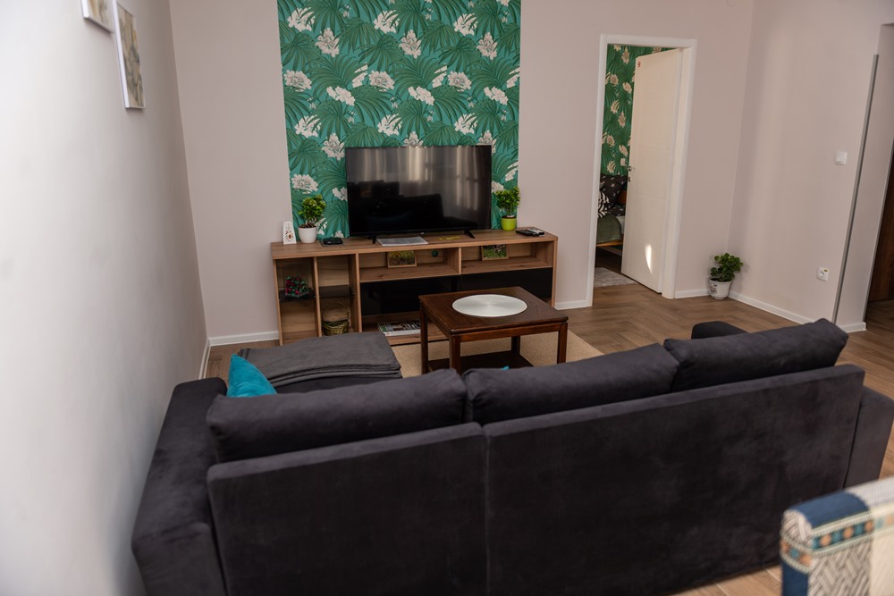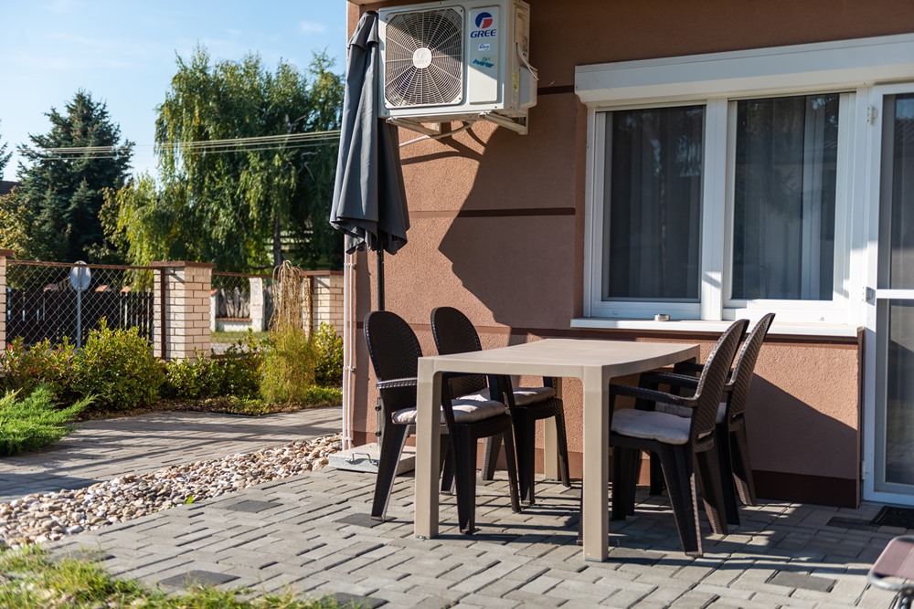 The most spacious apartment of our apartment house in Palic is located on the ground floor, where everything is given for rest, relaxation and entertainment. Covering a total of 43 square meters, it has an open-space living room with kitchen and dining room, a bedroom, a bathroom and an entrance hall, as well as a 12-square-meter terrace with direct access to the garden.